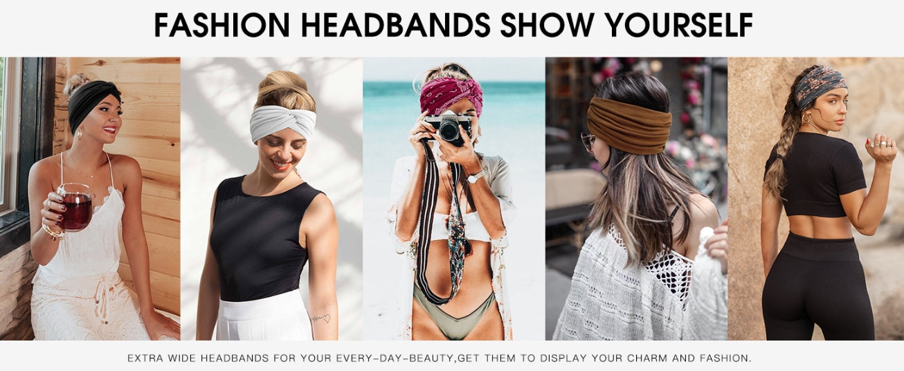 Thick Headbands Material - Wide turban head bands are made of polyester and spendex blend, soft, breathable and comfortable. These Fabric headbwraps won't give you a headache after a long time wearing.