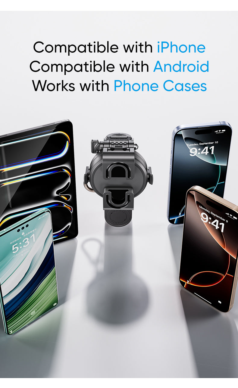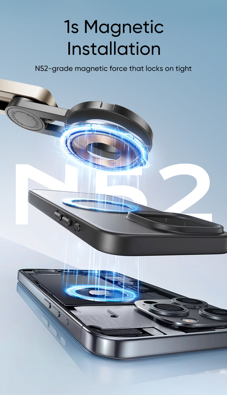 N52-grade magnets lock your phone securely in under a second—perfect for quick setups.